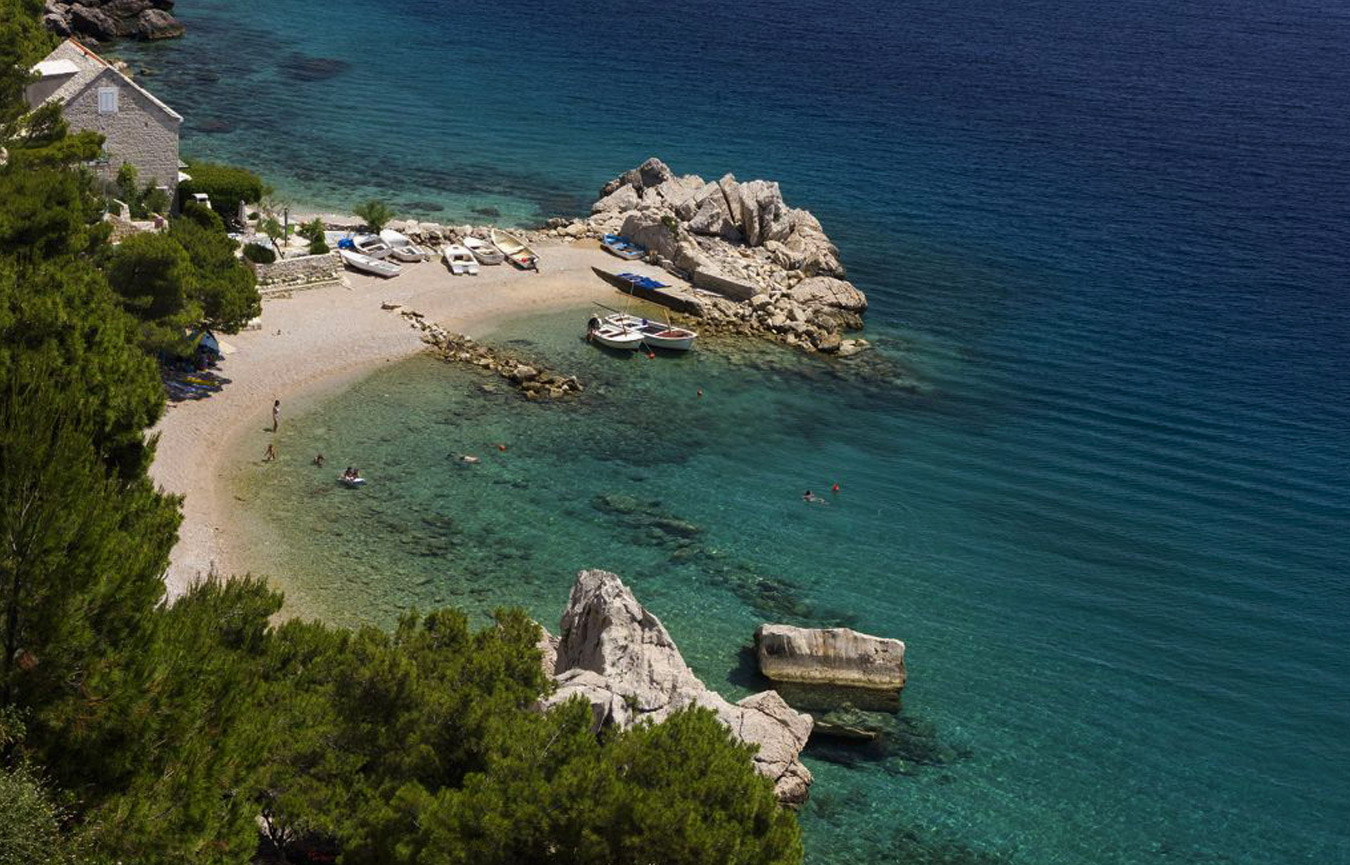 The village, built on the slope, is divided into the lower and upper parts by the main road. Due to the hillside location, almost every accommodation has a fantastic view of the sea and the imposing Biokovo mountains that rise in the background. This scenery gives the village a unique panorama. In the old village there is a small church and a charming maze of alleys. All visitors who are looking for rest and relaxation will definitely feel at home.